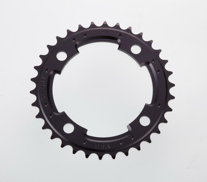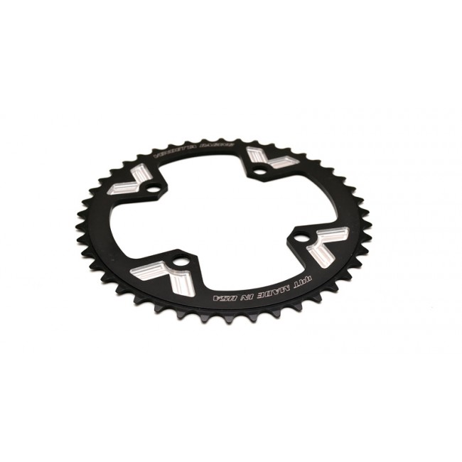 Vendetta bicycle Chainring 4-hole 1/2"x3/32" Aluminium 6061-T6 usinée CNC, made in USA • 4 points de fixation, entraxe 104mm (compatible avec le pédalier Shimano DXR) • Nombre de dents, 35T. 36T, 37 T., 38T, 39T. weight 95 gr. colour black
